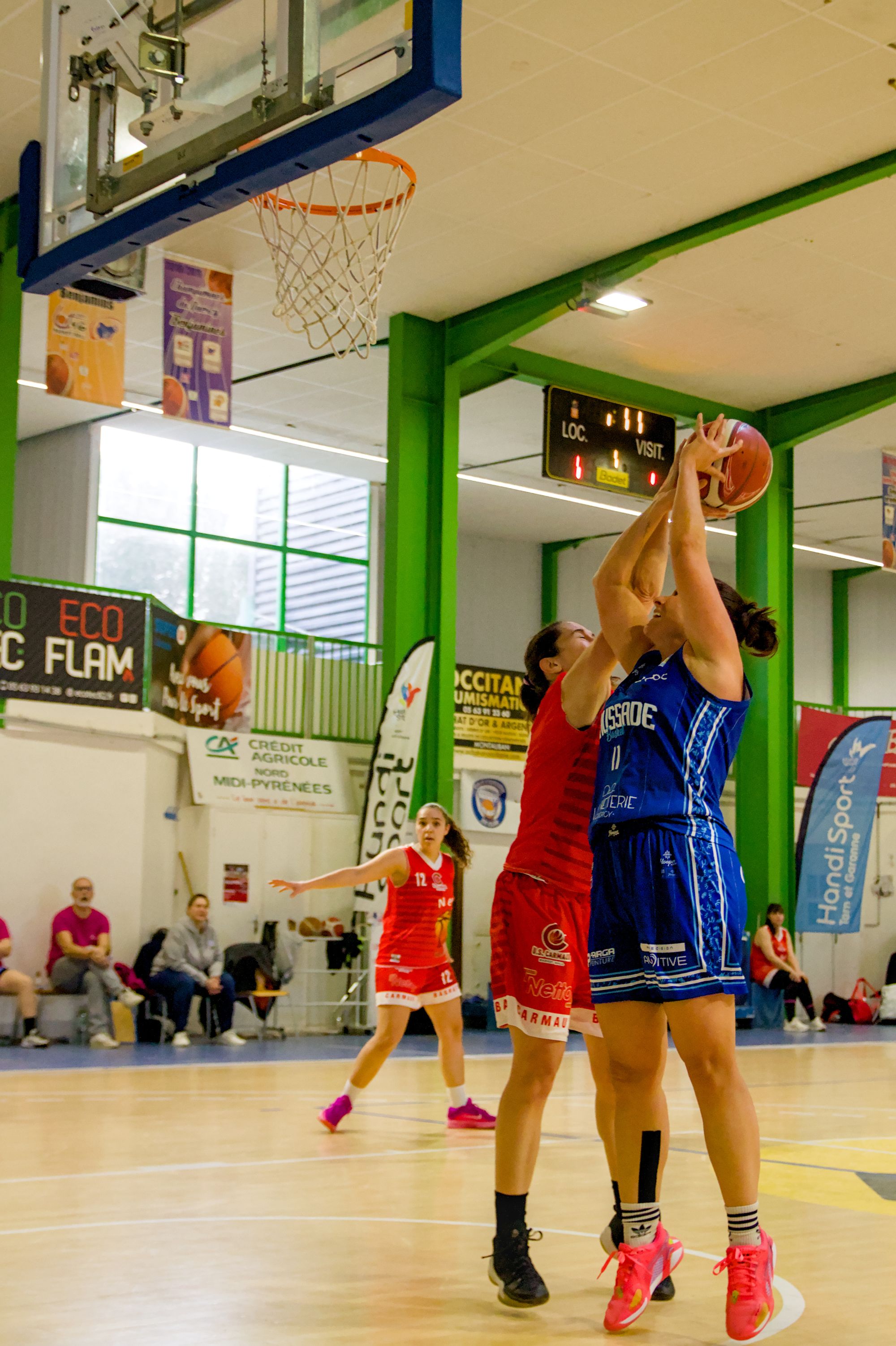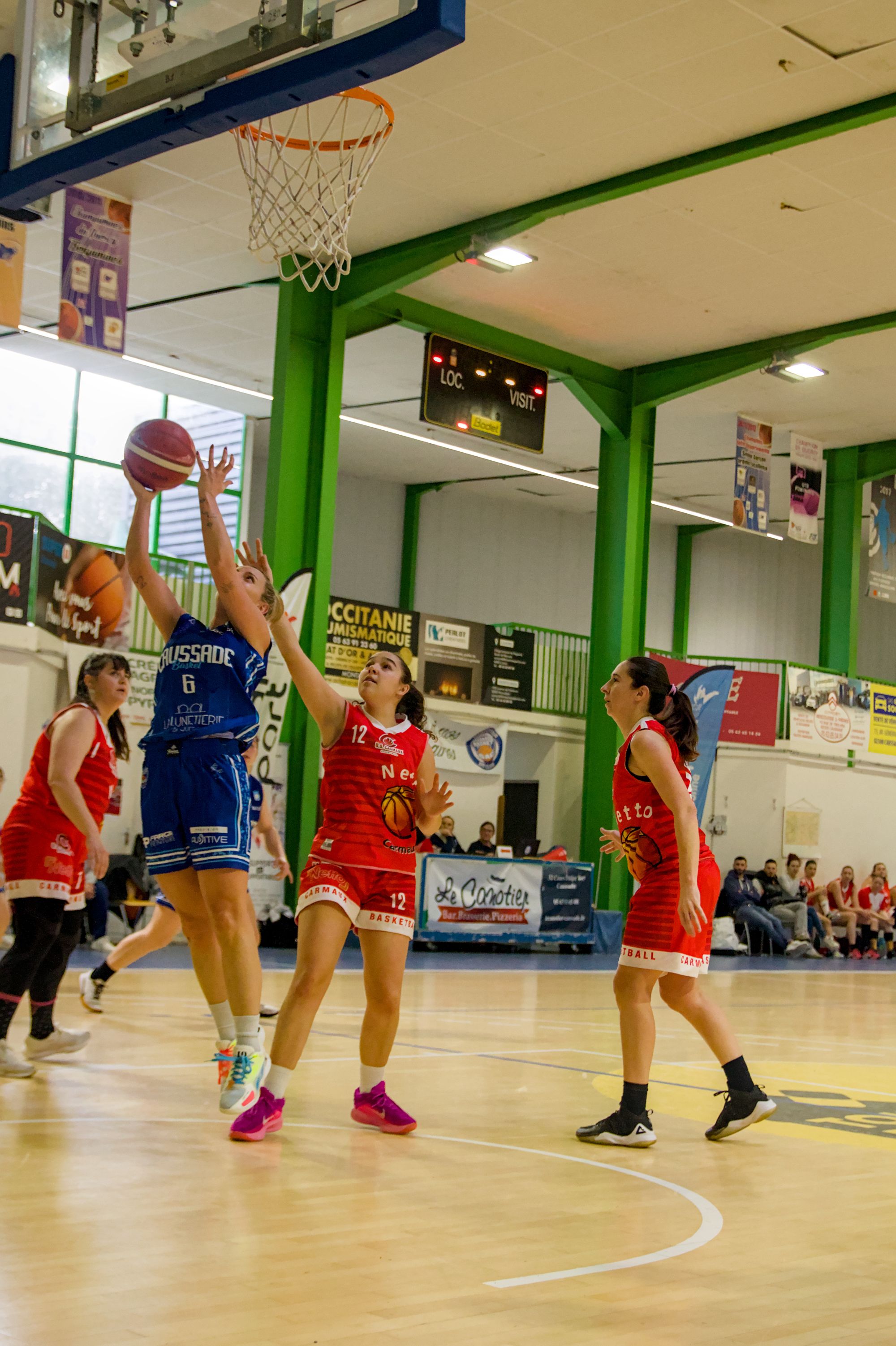 Dès les premières minutes, les Caussadaises ont imposé leur rythme grâce à une réussite remarquable à longue distance, enchaînant les tirs à 3 points parfaitement exécutés. Cette adresse extérieure a rapidement creusé l’écart et mis Carmaux en difficulté.